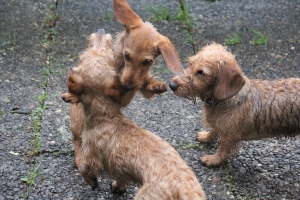 Die Wurfgeschwister Nübbel, Nacho und Fiete waren hier. Und auch die Uroma Emily vom Teuto Teckel.