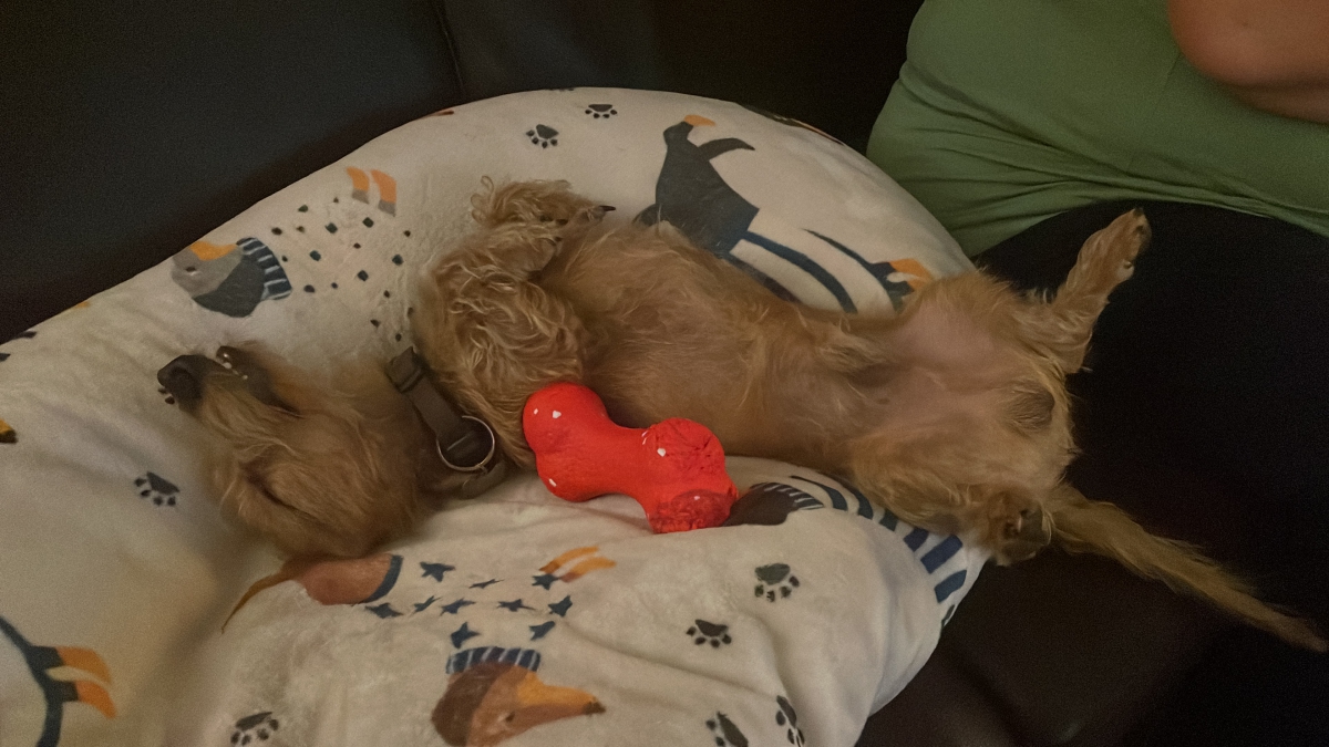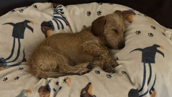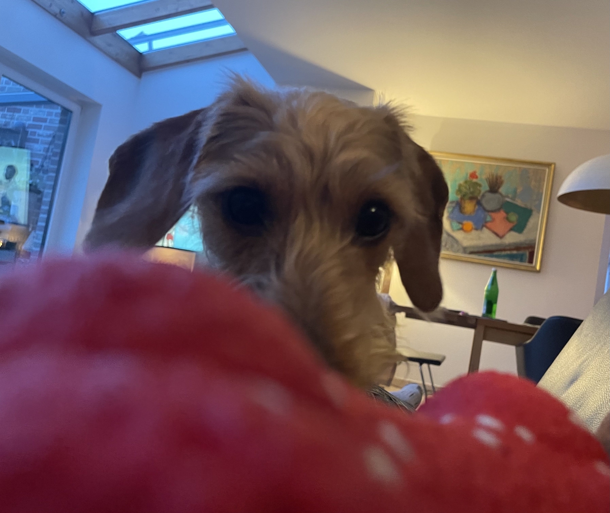 Alles in Allem fühle ich mich Dackelwohl und das Schönste ist am Wochenende, wenn ich früh morgens vom Pipimachen aus dem Garten komme und schnell die Treppe hochlaufe, um bei Mama auf die Decke zu hüpfen.