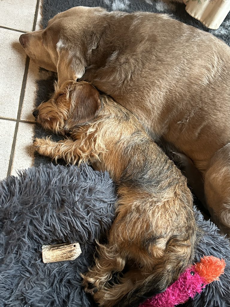 Gestern noch „Fussel“ heute „Blondy“. Das erste vorsichtige Trimmen hat ganz gut geklappt.