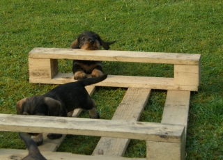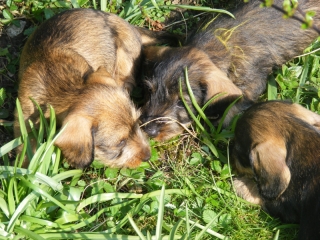 Jetzt haben die drei Kleinen Halsbänder bekommen.