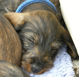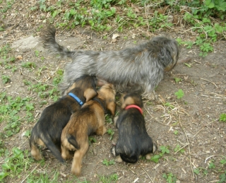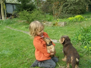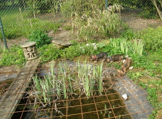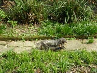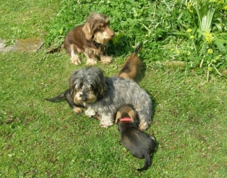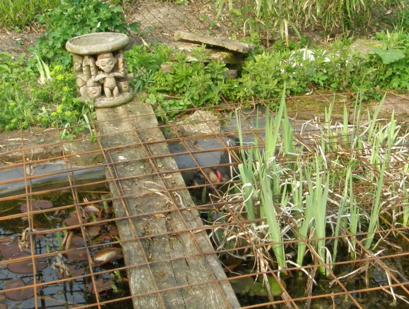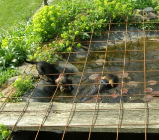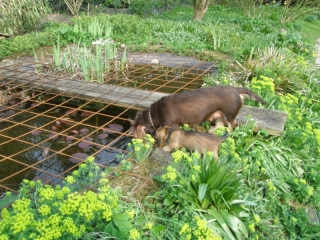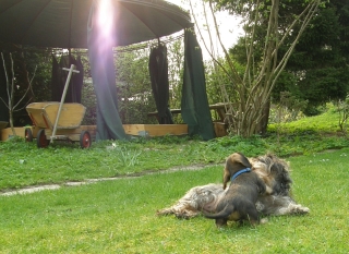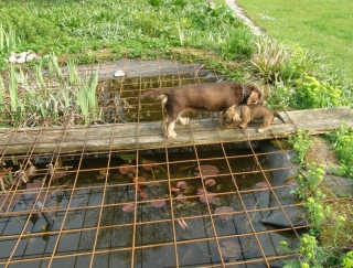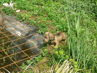 14.04.2009 Wir geniessen weiterhin die schönen Sonnentage. Die Welpen erobern so langsam den ganzen Garten. Der Teich ist zur Zeit besonders spannend. So spannend das Chili inzwischen zwei mal geschwommen ist.