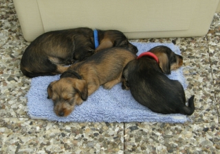 Mini und Maxi wechseln sich inzwischen recht gelassen mit der Welpenbetreuung ab.