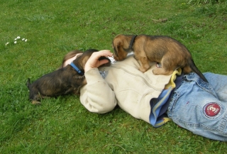 Die Welpen werden für unsere Jungs immer interessanter und umgekehrt auch.