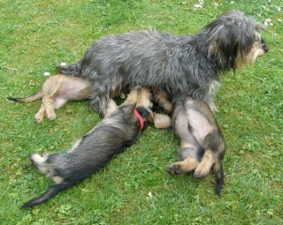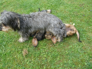 Mini hält noch immer brav still wenn die Bande trinkt.