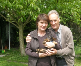 Curry kuschelt mit Renja. und Chili spielt Steiff-Tier