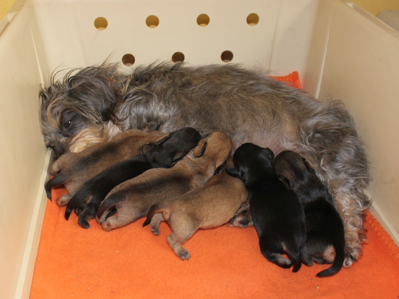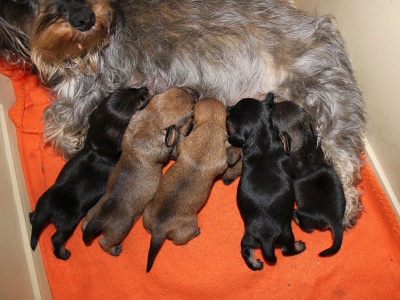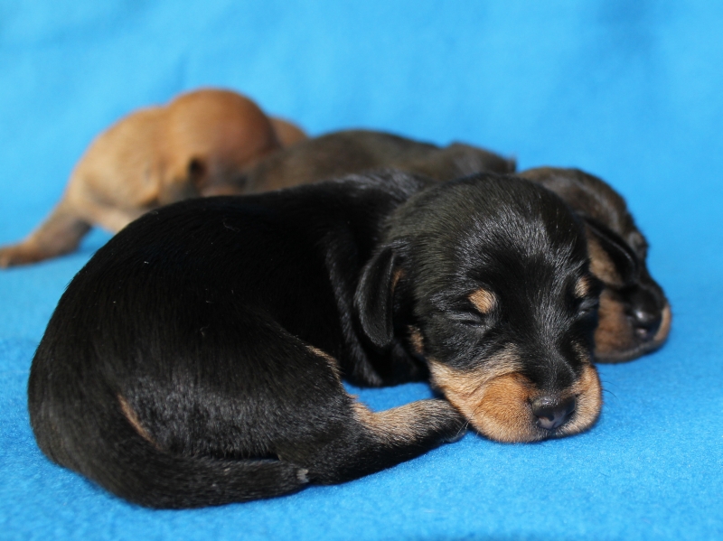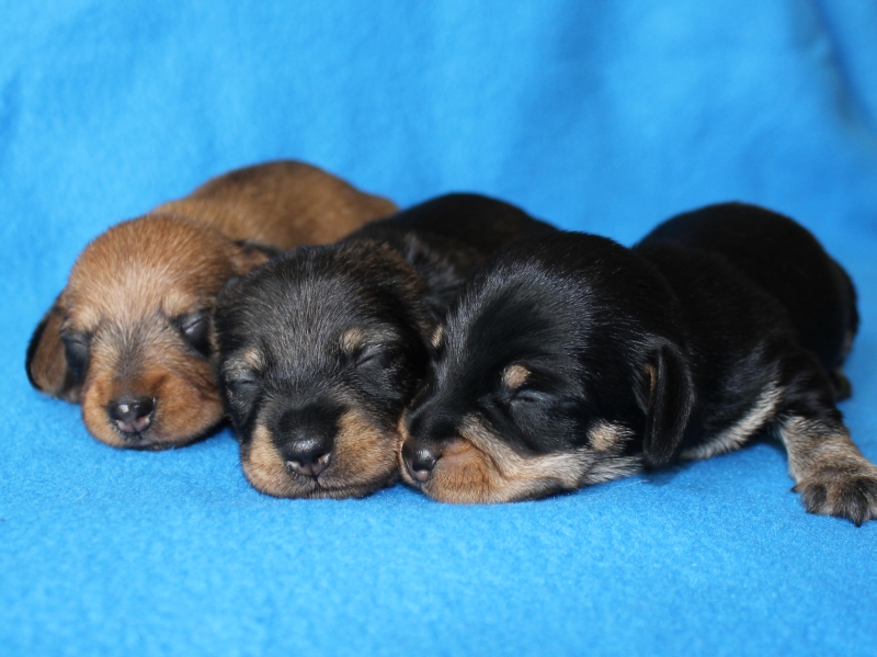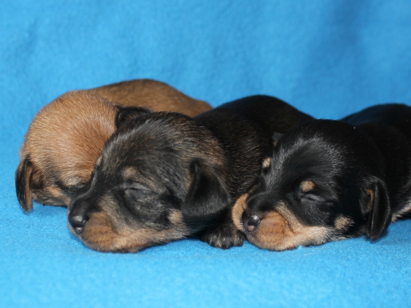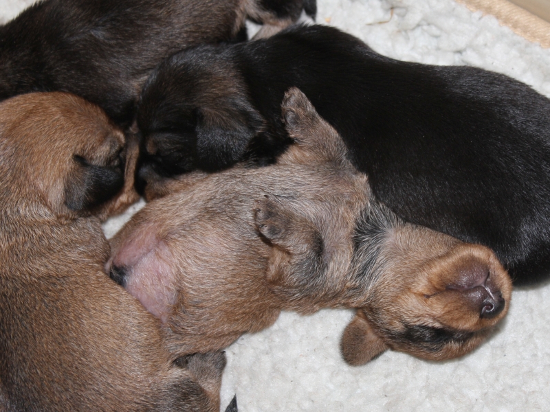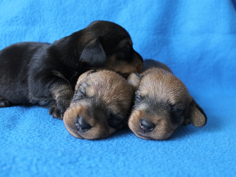 08.06.2010 Es ist nur eine Woche vergangen und die Hundekiste füllt sich schon deutlich.Sie haben zwischen 90 und 130 Gramm zugenommen und sind quietschfideel.