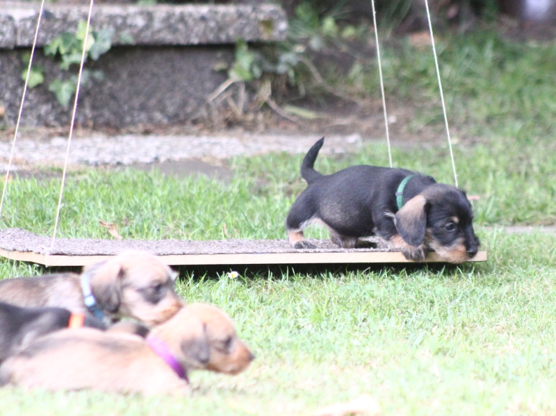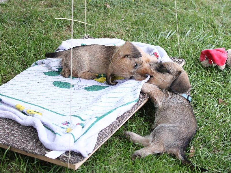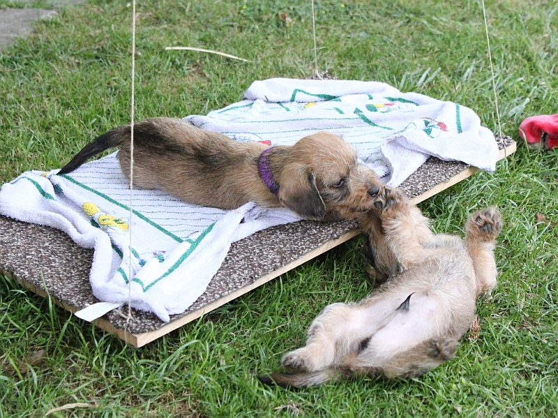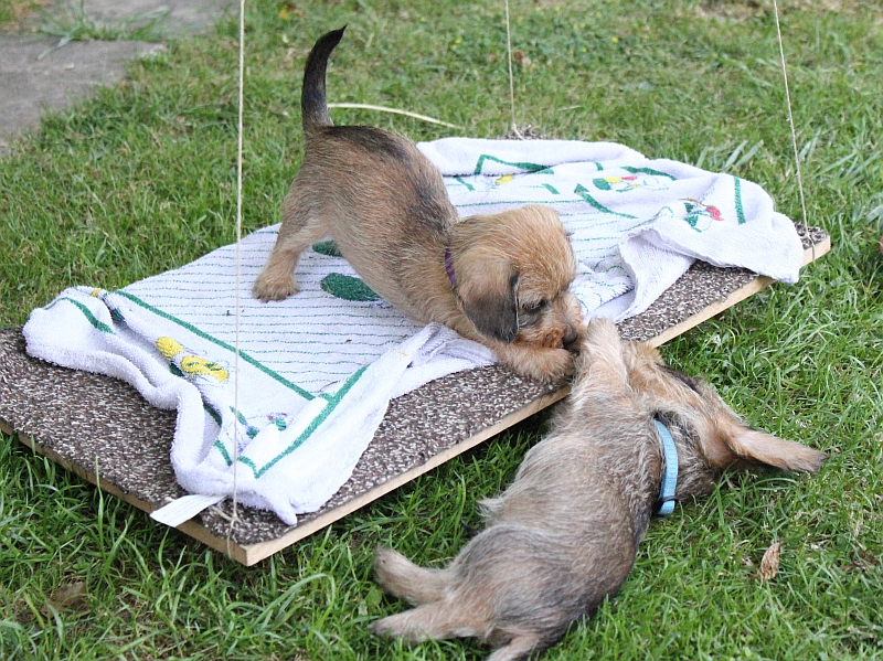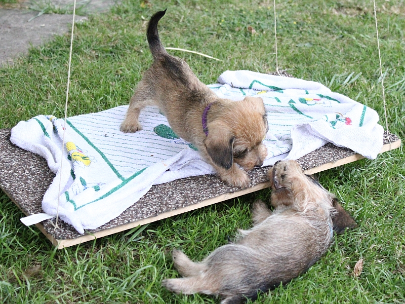 Unser Sohn Renja hat eine Schaukel für die Welpen gebaut.
