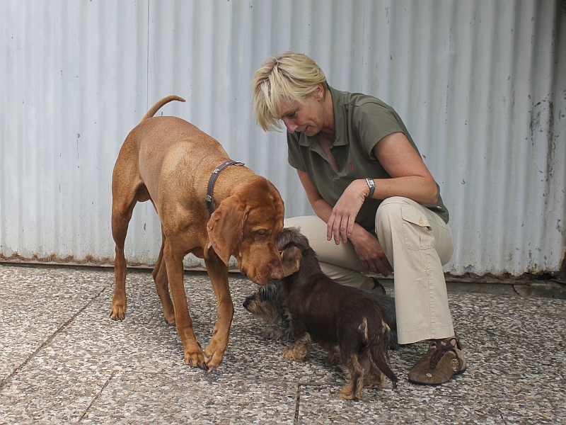 22.05.2011 Heute war noch mal Besuch da. Einer der Jungs zieht nach Mainz und bekommt Bengö, einen Vizslarüden,als großen Beschützer. Bengö durfte schon mal unsere Mädels kennen lernen.