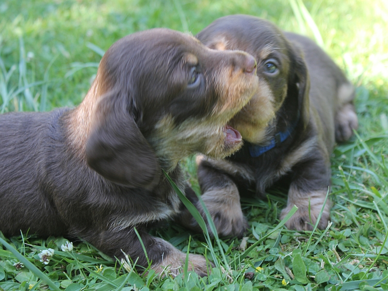 29.05.2011 Die kleinenen Rollmöpse wiegen jetzt 1120g und die dicken 1370g und 1400g. Die zweite Wurmkur haben sie bekommen und die Krallen sind auch wieder kurz. Die ersten Zähnchen sind durch, so das wir wohl diese Woche anfangen zu füttern. Lass mal dein Zähne anschauen dann darfst du meine auch mal spüren.