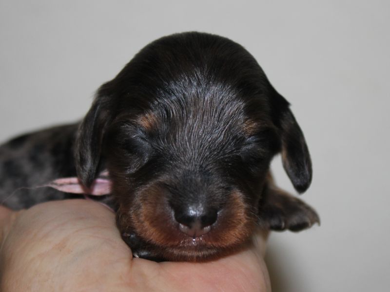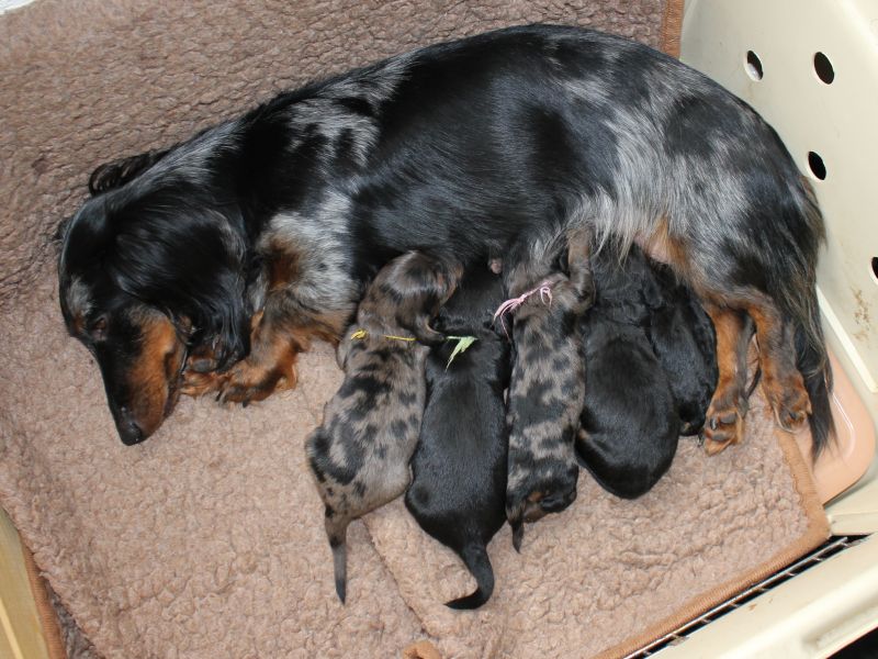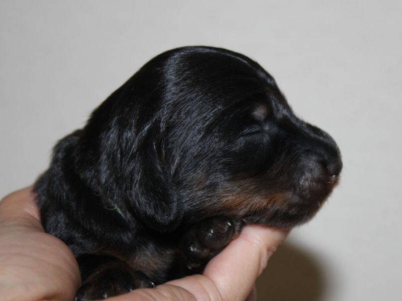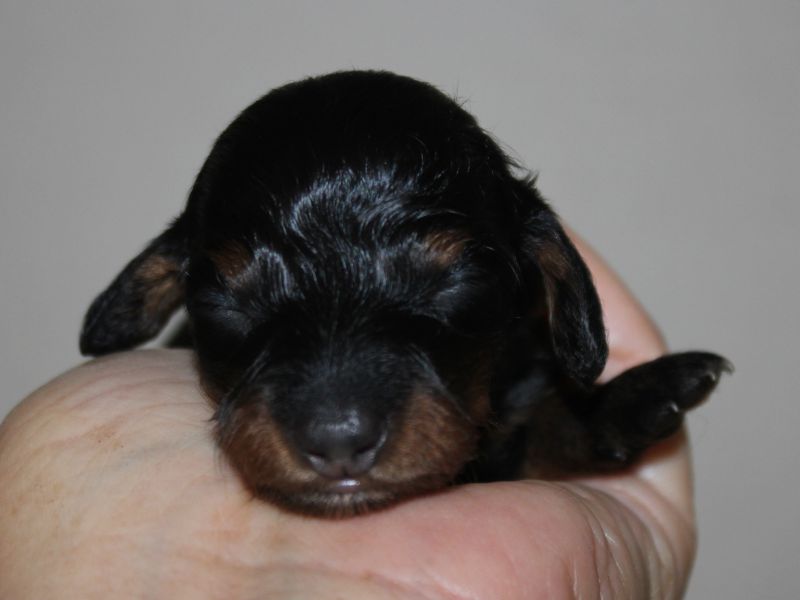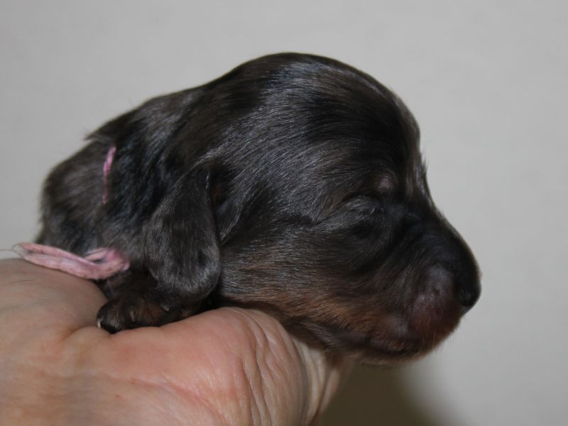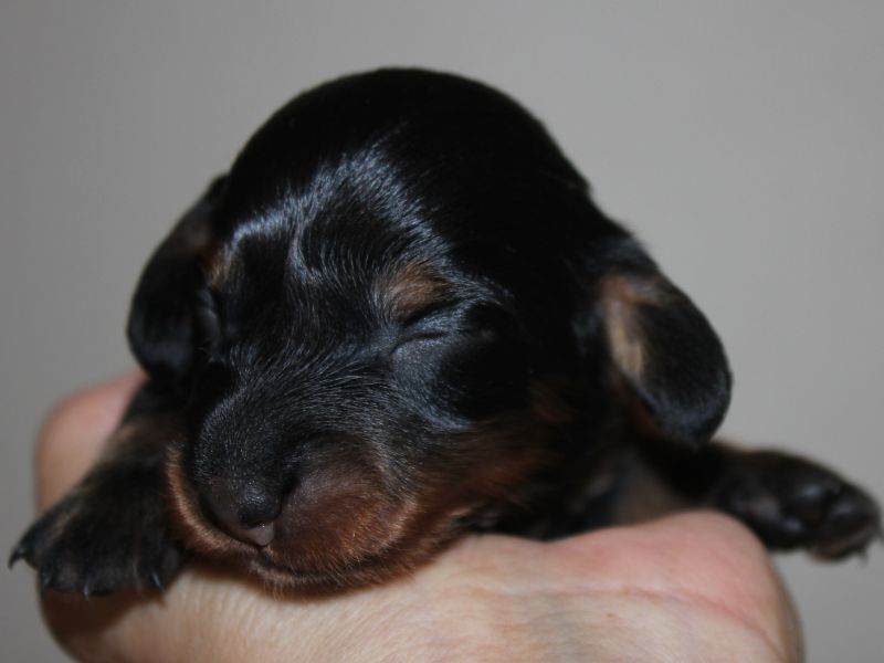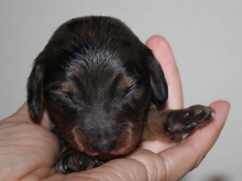 Die Hündin ist in diesem Wurf die Schwerste, zumindest diese Woche.